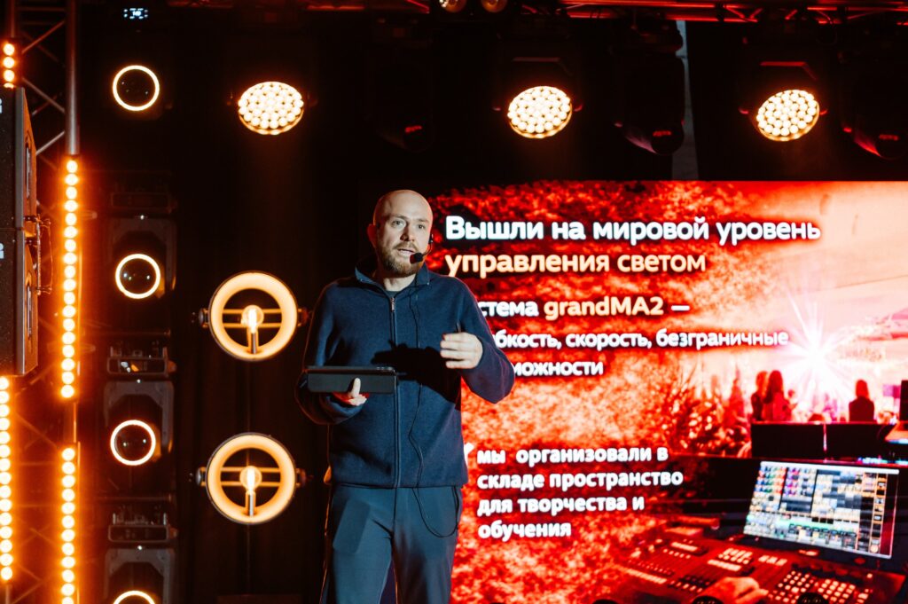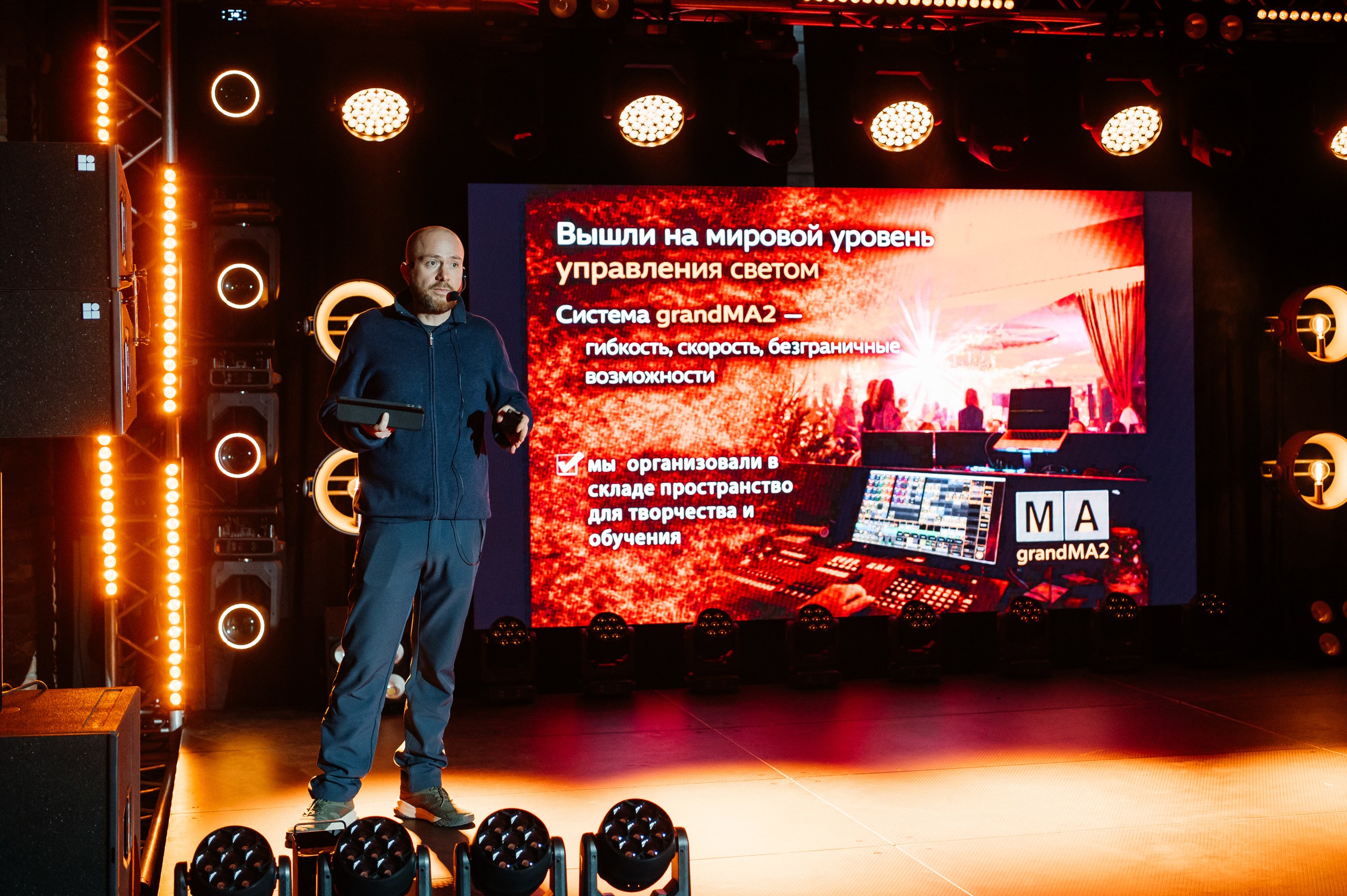 Всё работало как единый механизм: ритм, динамика, акценты. Свет поддерживал драматургию видео, звук усиливал эффект, экран раскрывал масштаб проектов.